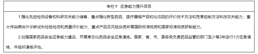 2.健全應(yīng)急管理制度機(jī)制。完善藥品安全事件應(yīng)急預(yù)案,健全應(yīng)急審評審批、檢驗(yàn)檢測、監(jiān)督檢查機(jī)制,完善藥品儲備和供應(yīng)制度。加強(qiáng)藥品檢驗(yàn)評價(jià)通用技術(shù)和關(guān)鍵技術(shù)研究,提升緊急情況下快速建立對新型藥品、醫(yī)療器械產(chǎn)品,特別是重大傳染病體外診斷試劑、疫苗、抗體藥物等檢驗(yàn)評價(jià)技術(shù)能力。