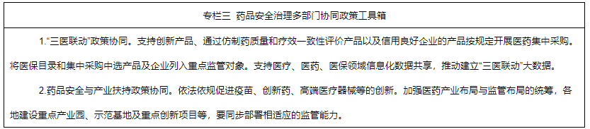 5.強(qiáng)化多部門治理協(xié)同。加快推進(jìn)“三醫(yī)聯(lián)動”改革。藥品監(jiān)管、公安、工信、衛(wèi)生健康、醫(yī)保、發(fā)展改革、財(cái)政、科技等部門加強(qiáng)資源共享和政策協(xié)調(diào),建立藥品安全治理多部門協(xié)同政策工具箱。發(fā)揮藥學(xué)科技社團(tuán)組織、新聞媒體作用,加大科普宣傳力度,舉辦全國安全用藥月和醫(yī)療器械、化妝品安全科普宣傳周等品牌活動,提升全民安全用藥用械用妝科學(xué)素養(yǎng)。進(jìn)一步完善有獎舉報(bào)制度,暢通投訴舉報(bào)渠道,充分發(fā)揮12315熱線和全國12315平臺作用。將藥品安全信用狀況依法記入企業(yè)和個(gè)人信用記錄,納入全國信用信息共享平臺,將嚴(yán)重違法失信企業(yè)和個(gè)人列入市場監(jiān)督管理嚴(yán)重違法失信名單,依法依規(guī)實(shí)施跨行業(yè)、跨領(lǐng)域、跨部門失信聯(lián)合懲戒。